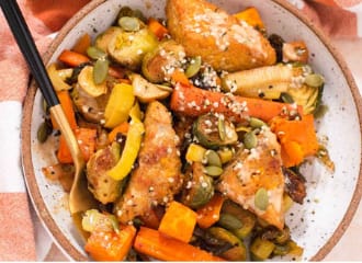 Celebrate autumn with these blood-sugar-friendly recipes that deliver seasonal comfort without the spike: Cider-Braised Chicken Thighs With Apples and Greens balances fruit sweetness with lean protein and fiber-rich greens, while Sheet Pan Tempeh and Fall Vegetables offers plant-based protein with minimal prep. Pumpkin Polenta with Mushrooms and Sausage brings cozy comfort—keep portions modest and load up on the vegetables. Crab, Kale & Ricotta Lasagna Rolls with Parmesan Pumpkin Sauce transforms pasta night into a protein-packed meal, while Vegan Lentil Meatloaf satisfies with fiber-rich lentils. Finish with Healthy Apple Crisp with Oats and Almond Flour, where smart swaps add protein and fiber—serve with Greek yogurt for extra staying power.